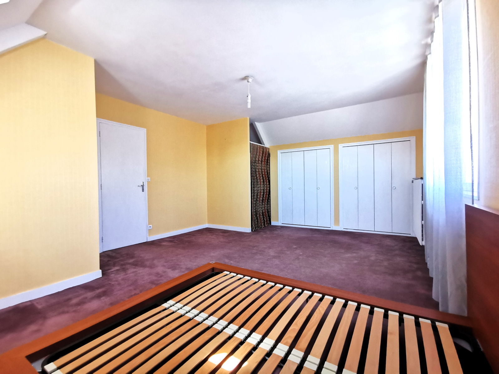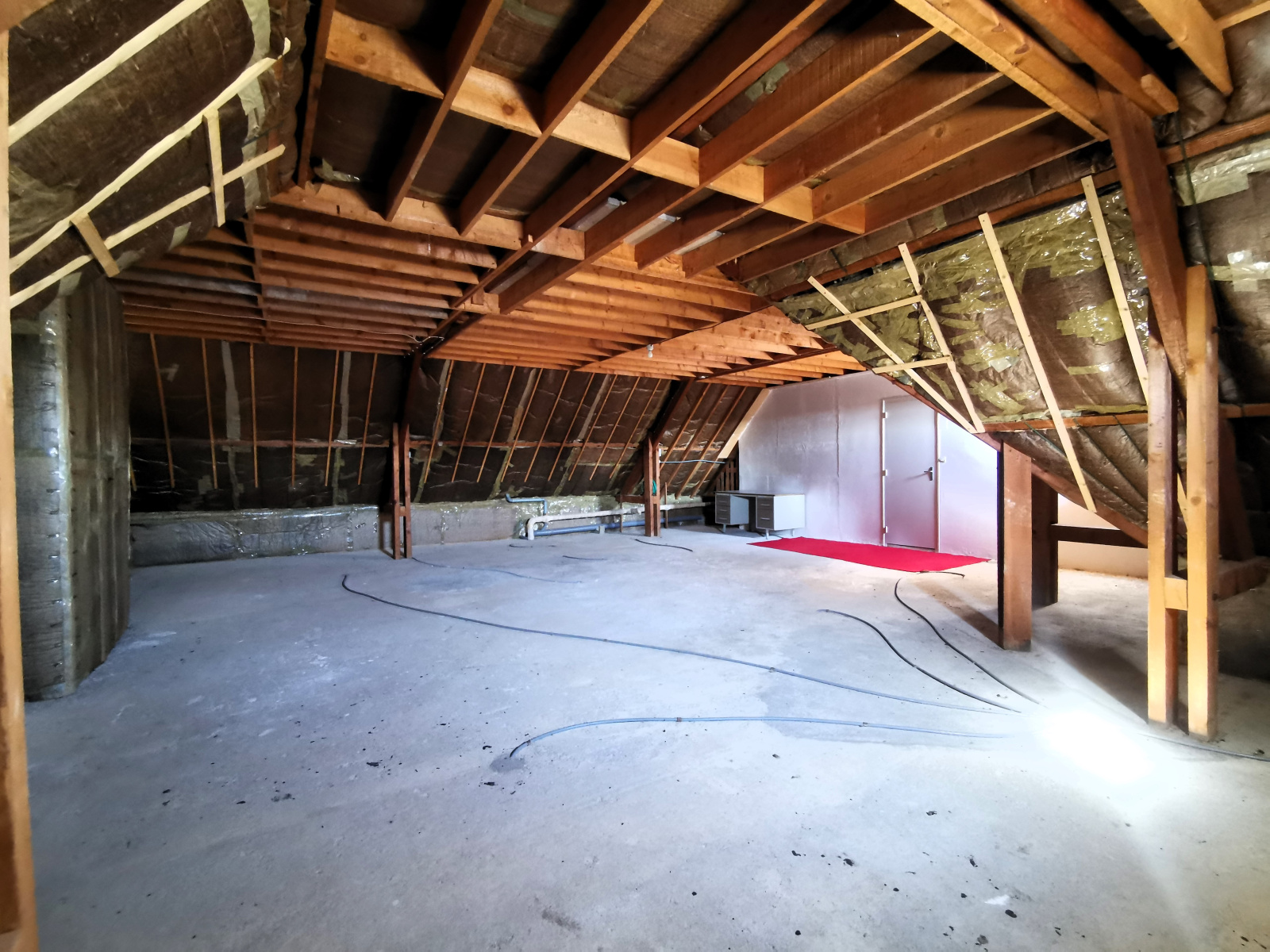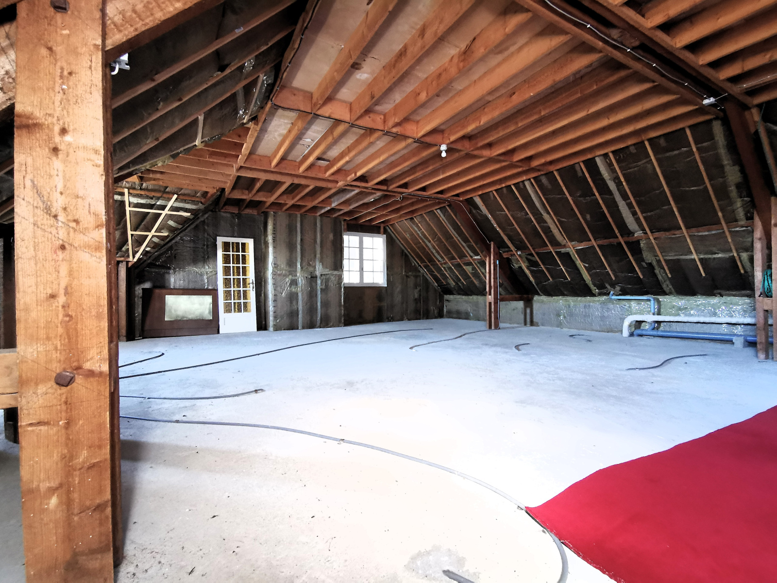 A l'étage : une chambre, un wc et un très grand grenier de 64 m² (79 m² au sol), parfait pour y aménager des chambres supplémentaires et une salle d'eau.