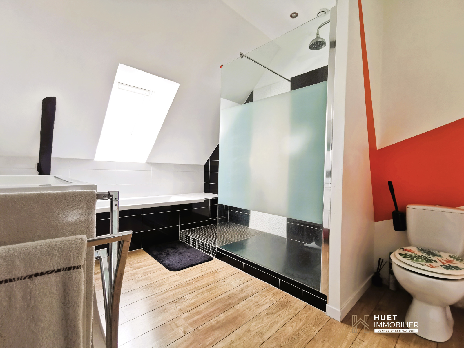 A l'étage, une passerelle dessert trois belles chambres, et une salle de bains mixte avec wc.