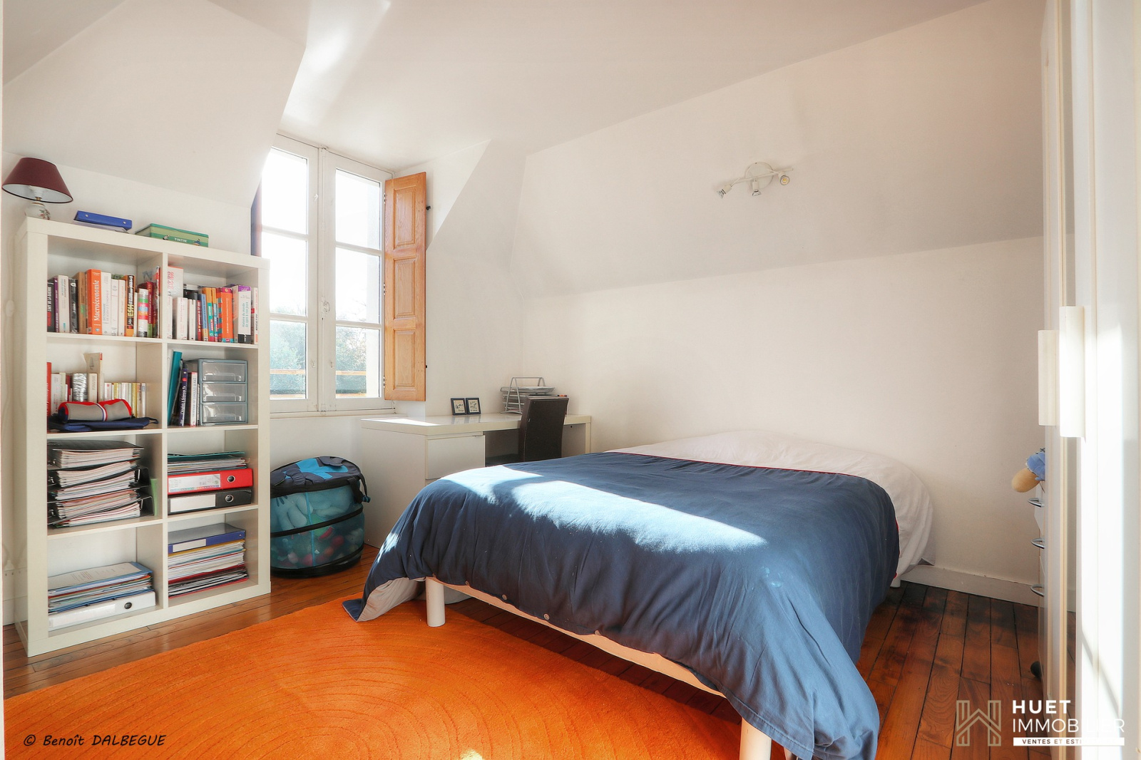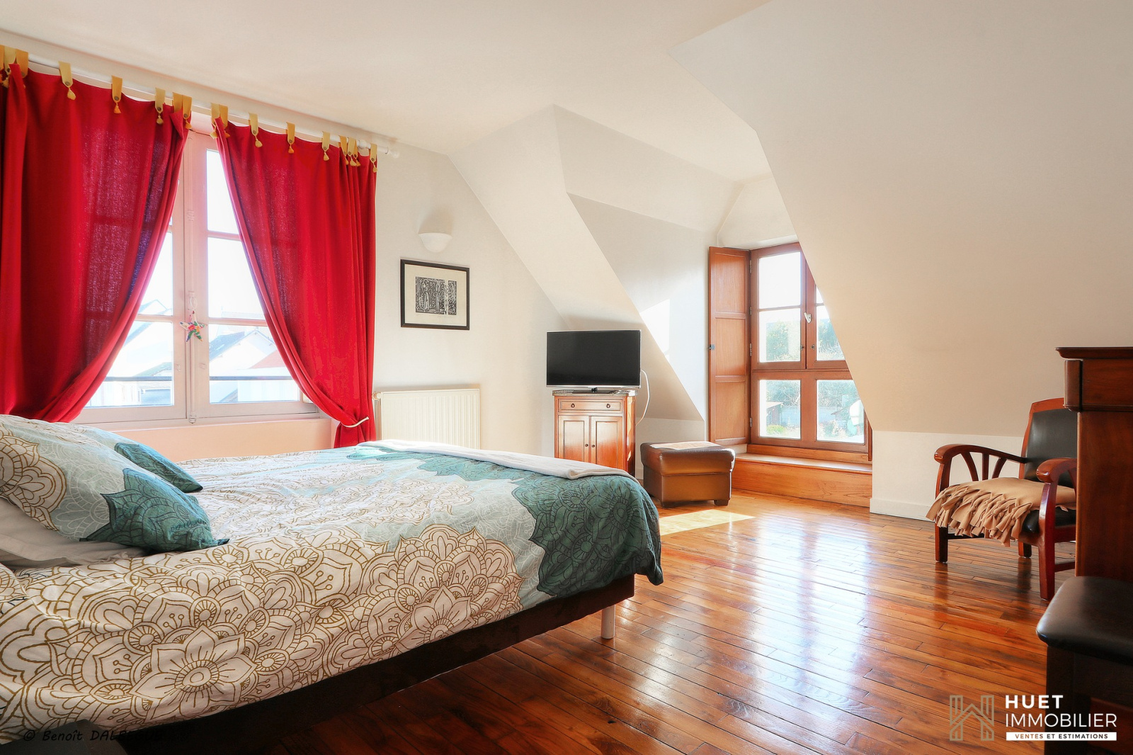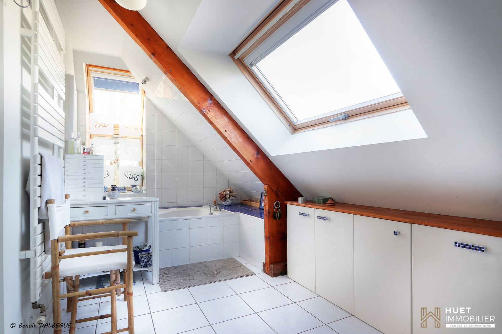 L'étage, très lumineux, s’ouvre sur un palier qui dessert une chambre parentale joliment mansardée avec son dressing, une grande salle de bains, et une autre chambre plus petite.