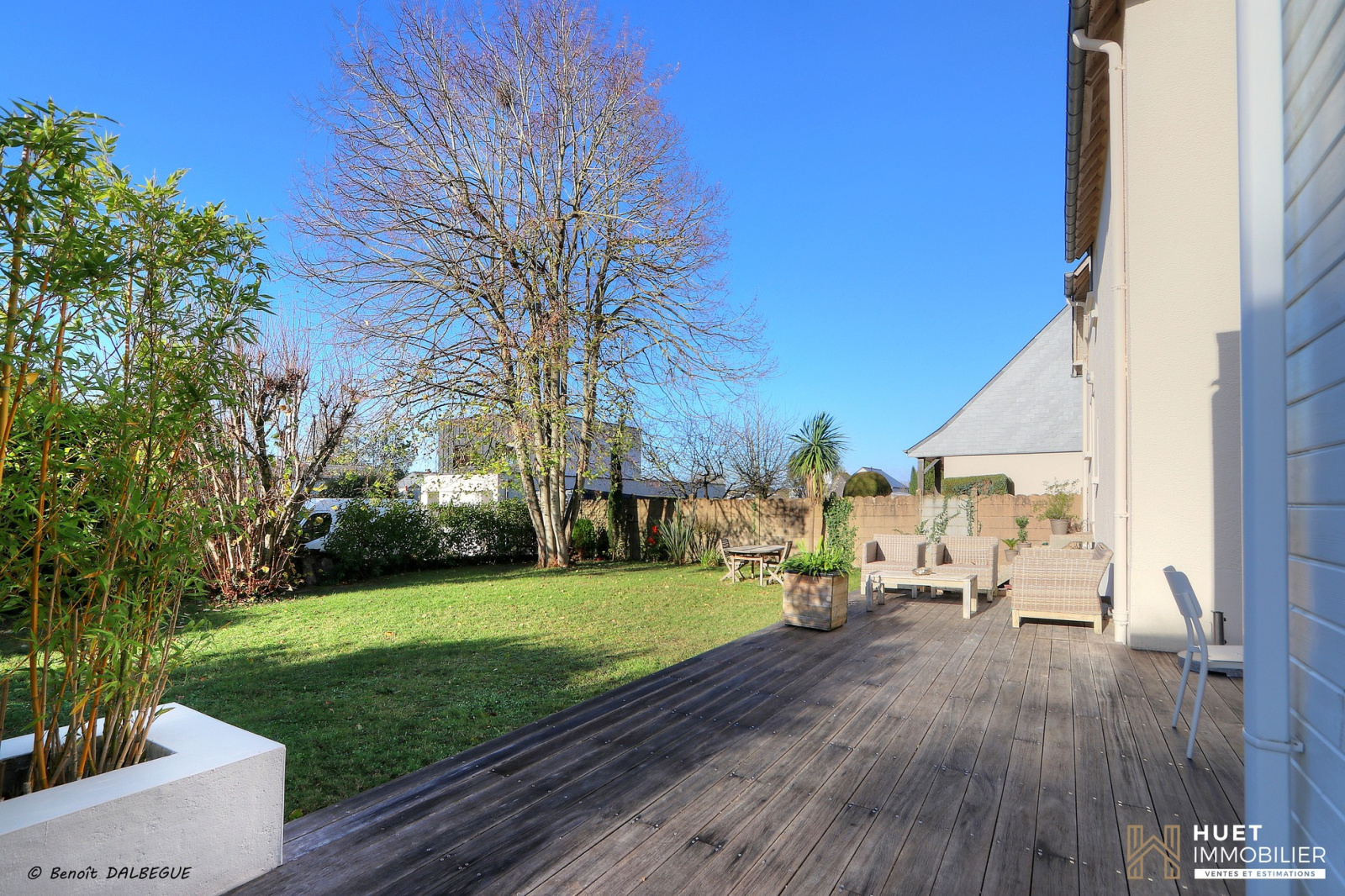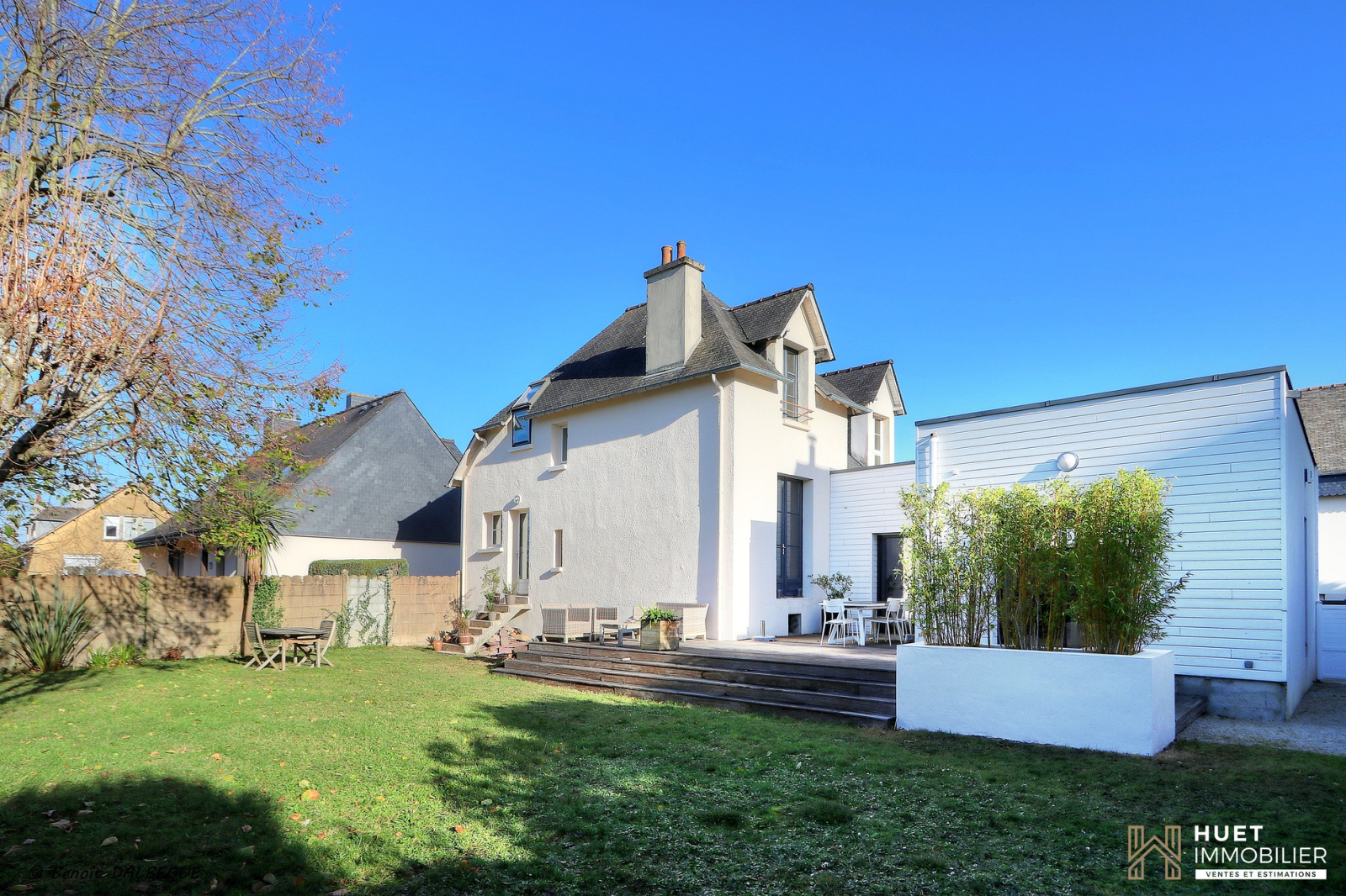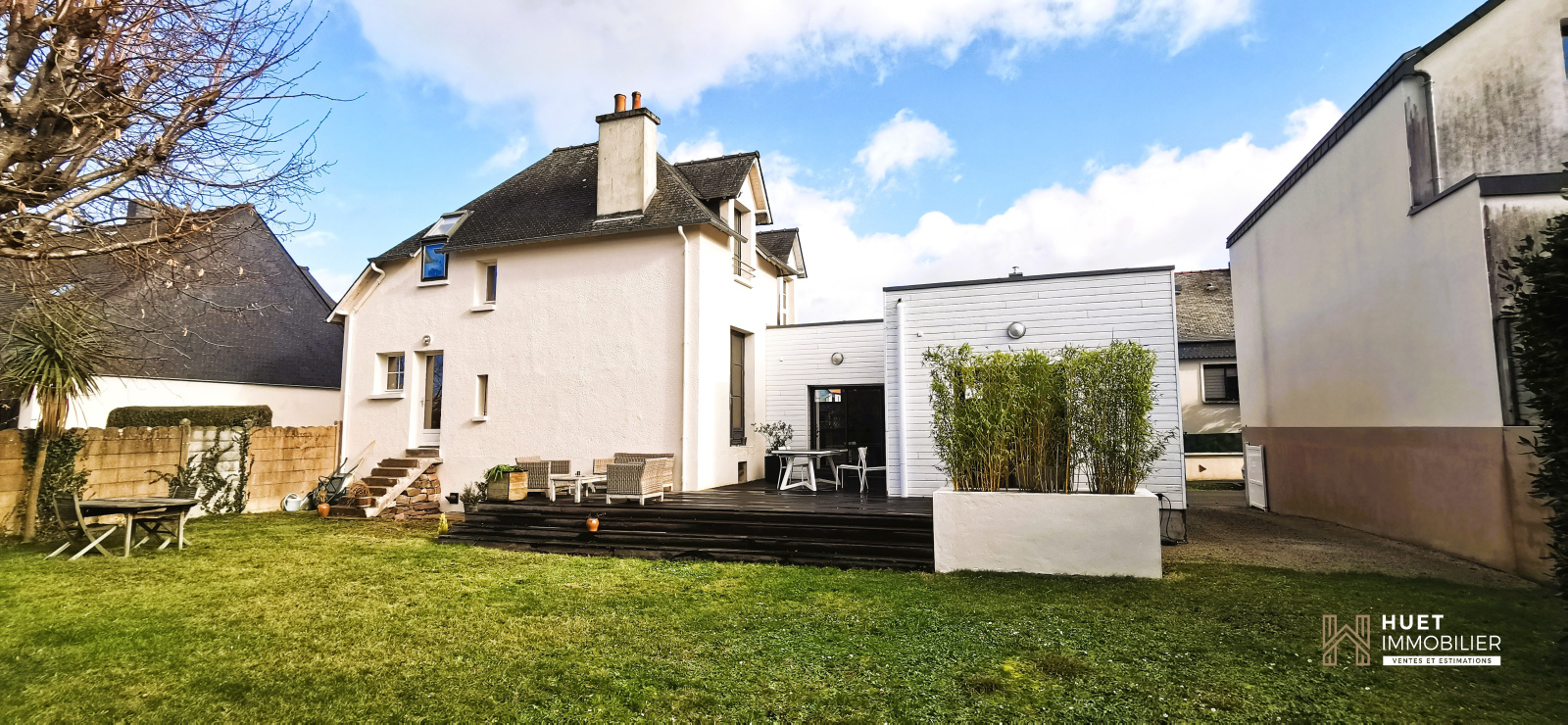 VENDU -Rennes métropole - Dans le centre-ville de Bruz proche de toutes commodités (transports, commerces, écoles et accès gare en 5mn à pied), cette grande maison de ville indépendante est un lieu de vie idéal pour une famille à la recherche de confort et de modernité. Construite dans les années 50, elle a bénéficié d'une rénovation avec extension afin d'offrir de généreux volumes et le confort d’une vie familiale contemporaine. D'une surface de 161 m², sans compter le large sous-sol aménagé, elle s’ouvre côté jardin sur une grande terrasse avec patio. Le terrain de 519 m², arboré, offre un bout de campagne à la ville.