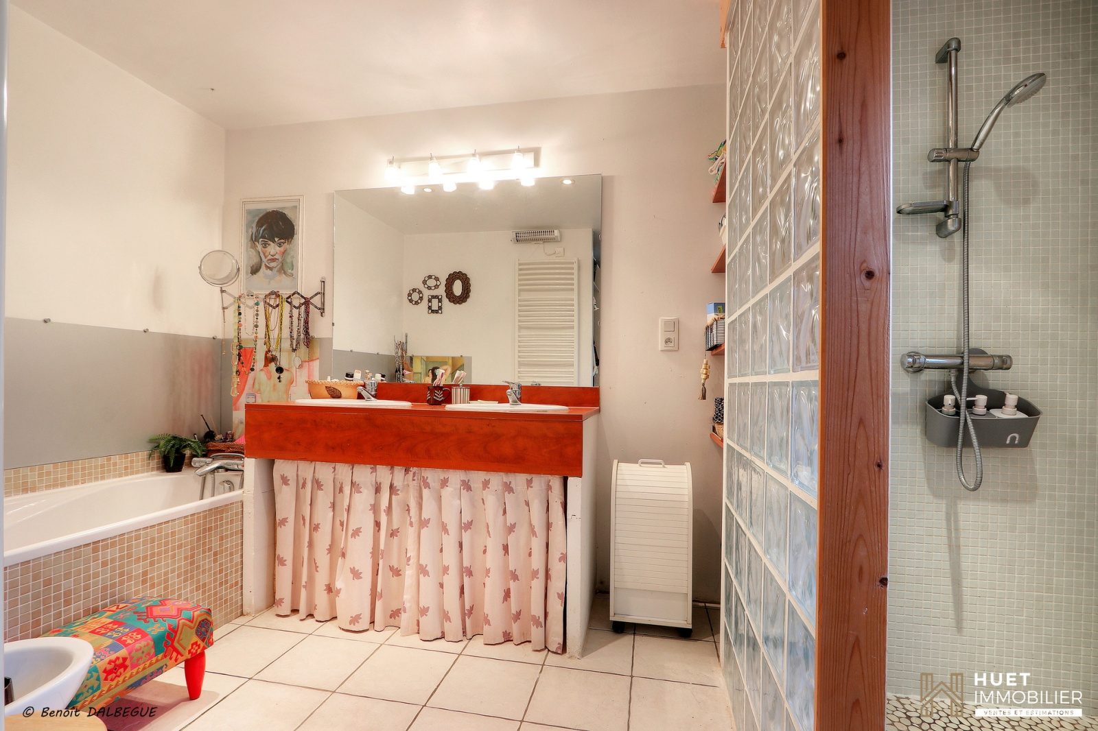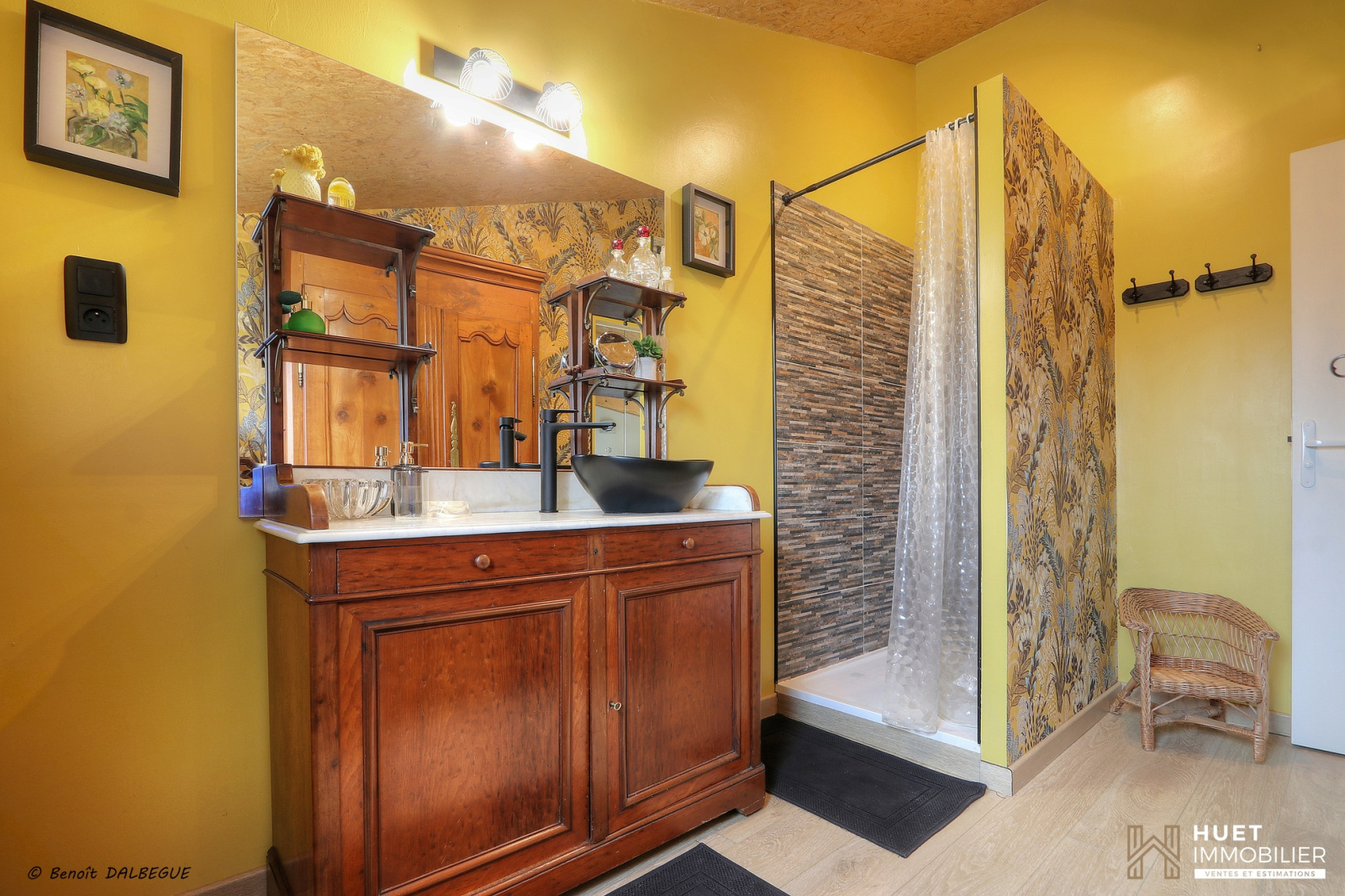 A l'étage, deux salles d'eau et trois chambres spacieuses offrent le confort nécessaire pour accueillir famille et invités. Un grenier à usage d'atelier de 28m² complète cet étage.