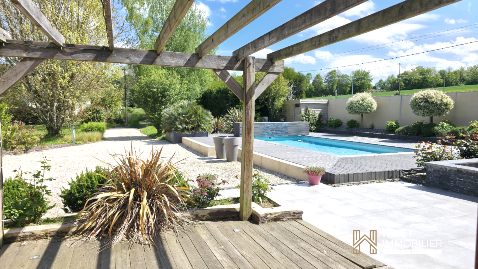Bâtie sur une parcelle de 3 424 m², vous profitez d'un beau parc arboré et paysagé, loin de la densité urbaine.